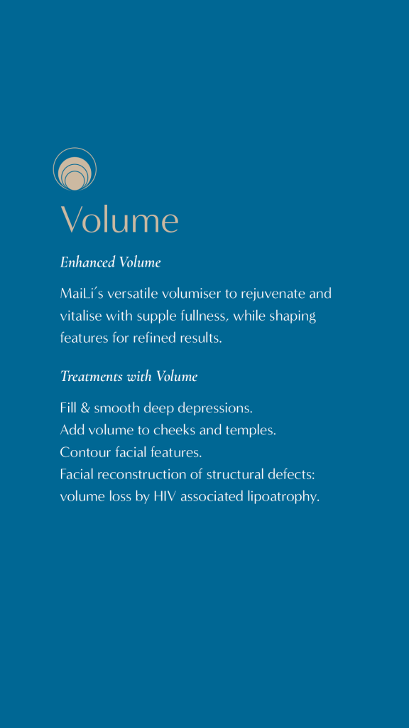- Volume: A versatile volumiser that restores plumpness and suppleness to key areas of the face. It helps to redefine your facial contours and add volume to areas that have lost collagen and elastin, such as in the cheeks and temples.